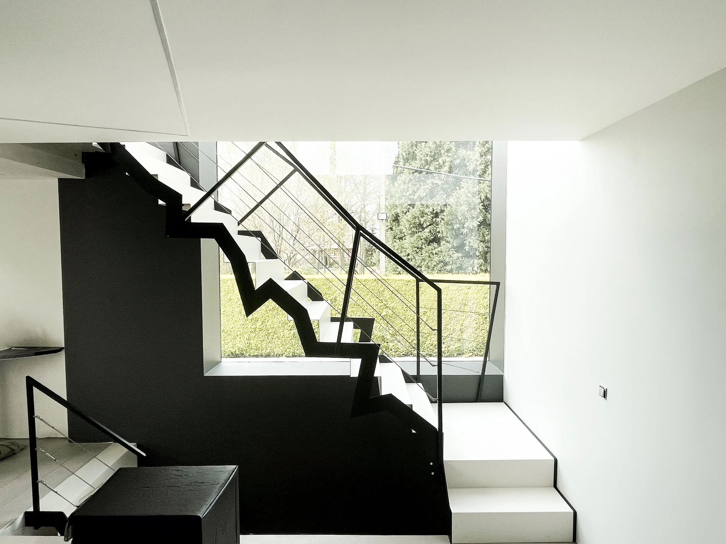 Wat dit ontwerp zo bijzonder maakt, is de gedurfde vormgeving die een statement maakt in deze ruimte. De leuning met stalen kabels zorgt niet alleen voor een strakke en eigentijdse uitstraling, maar zorgt ook voor de nodige veiligheid en stabiliteit. Dit ontwerp toont aan dat een trap meer kan zijn dan slechts een functioneel element in uw huis.